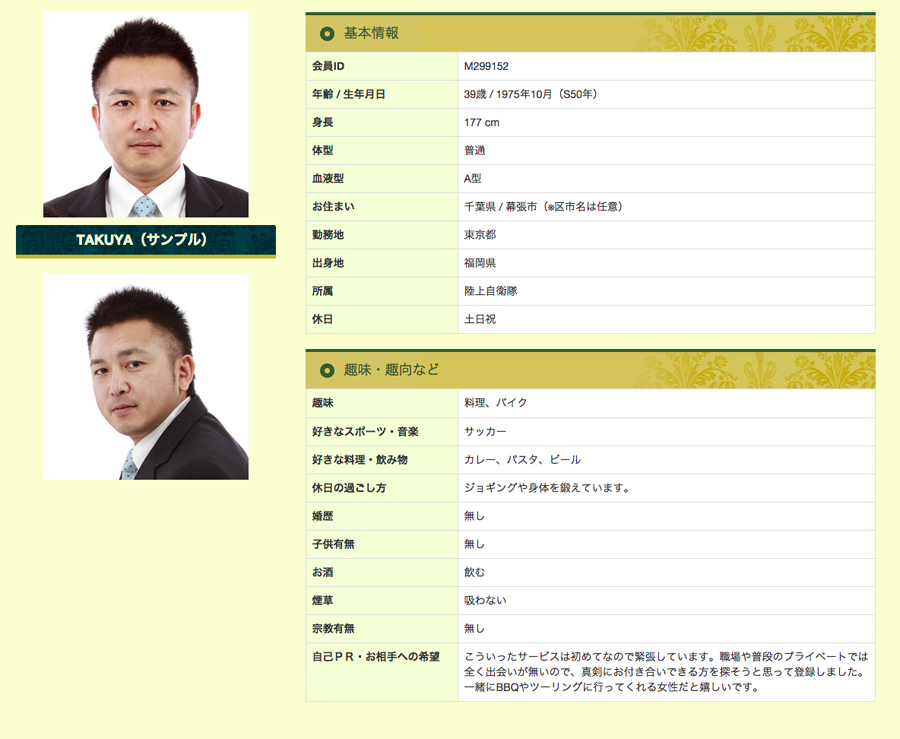 ※ あらかじめ組まれたプログラムにより、年齢やエリアを考慮した上で、自動でご紹介。気に入った男性自衛隊員にアプローチ
